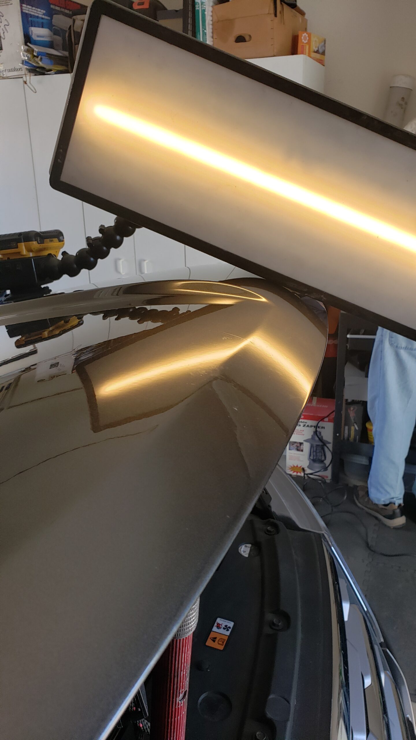 Repaired a tough hood dent flawlessly, achieving a polished finish in time for the urgent sale.