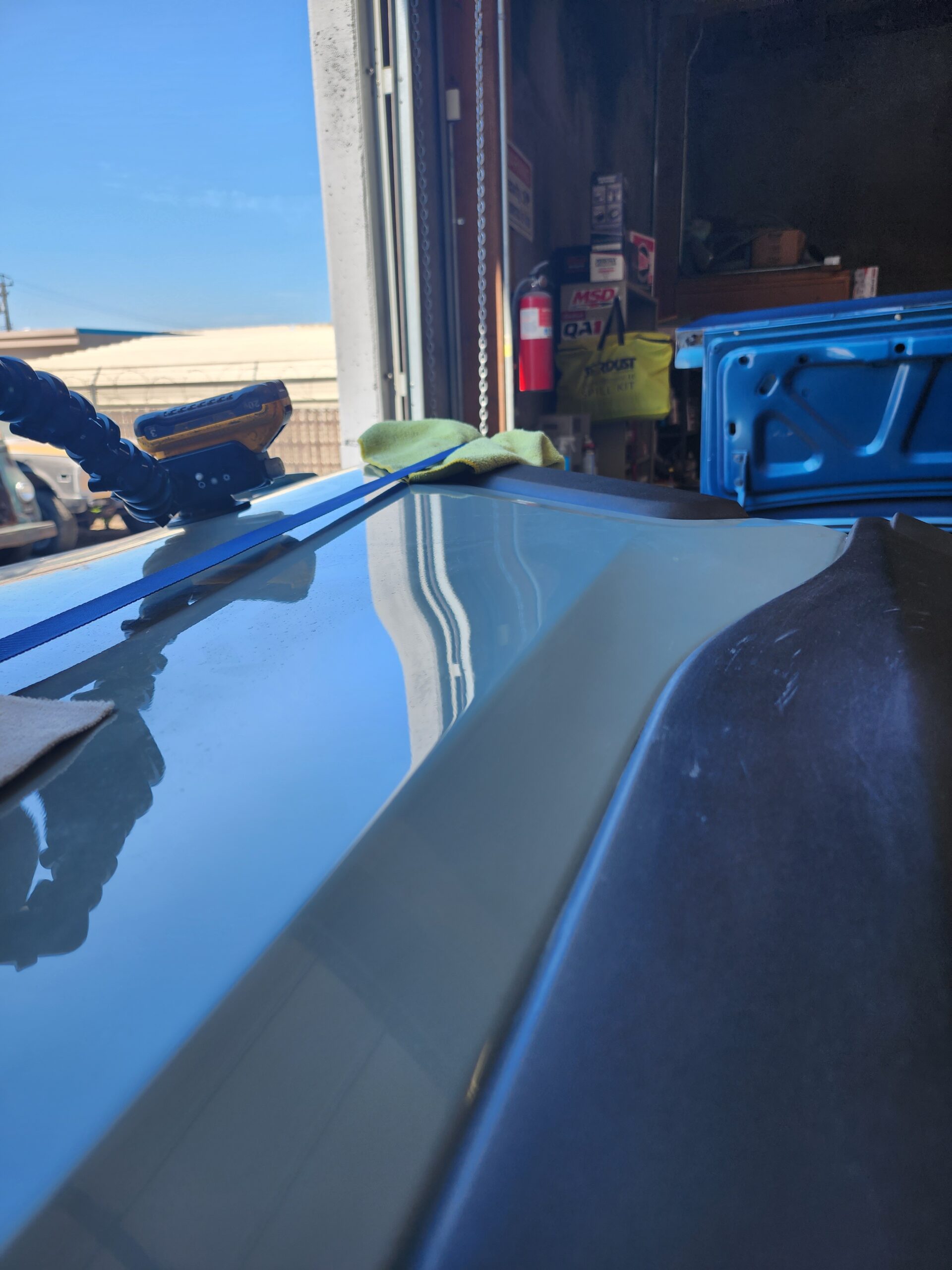Pre-Repair Preparation – Preparing the vehicle for repair by cleaning the area.